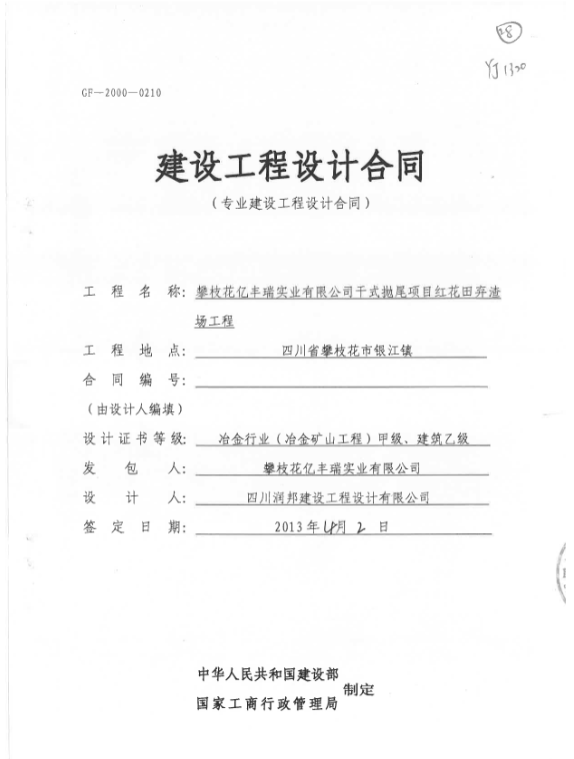 攀枝花億豐瑞實業有限公司干式拋尾項目紅花田棄渣場工程
