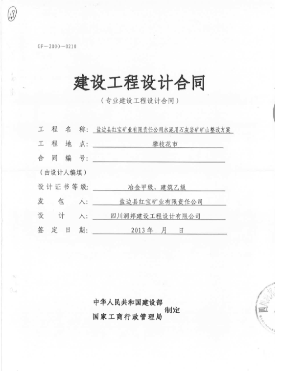鹽邊縣紅寶礦業有限責任公司水泥用石灰巖礦礦山整改方案